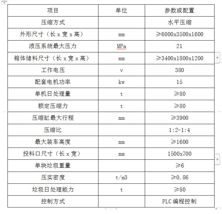 1.主要特點(diǎn) ◇平穩(wěn)可靠:兩側(cè)舉升,剪叉跨度大,升降平穩(wěn),無(wú)傾斜; ◇淺地坑:地坑深度僅為1.55m,保潔及維修極為方便; ◇高效率:壓實(shí)每噸垃圾時(shí)間≤10min; ◇全封閉水平壓縮:采用水平壓縮方式,垃圾壓縮密度≥0.86t/m3,垃圾壓縮后體積大大減小,從而大幅度提高轉(zhuǎn)運(yùn)車輛裝載量和轉(zhuǎn)運(yùn)效率,降低垃圾處理、轉(zhuǎn)運(yùn)等費(fèi)用; ◇動(dòng)作少,故障率低,整套設(shè)備的垃圾壓縮、裝車由三個(gè)動(dòng)作完成,簡(jiǎn)單實(shí)用,各動(dòng)作之間安全互鎖,防止操作人員誤操作造成安全事故,安全可靠; ◇垃圾儲(chǔ)存、壓縮及寄存全部在地面以下,地面上沒(méi)有垃圾散落,對(duì)環(huán)境影響較小,環(huán)保性好;垃圾壓縮后密度高,水份少,可避免汽車運(yùn)輸中的垃圾散落、污水滴漏現(xiàn)象,避免二次污染; ◇土建費(fèi)用低,占地面積小,可以不蓋大型工作間,既節(jié)約了投資,也縮短了工期; ◇留有專門的維修窗口,維修保養(yǎng)方便; ◇設(shè)有固定式操作和遙控器兩種操作模式,方便實(shí)用; ◇自動(dòng)化程度高,可大幅提高工作效率,降低勞動(dòng)強(qiáng)度。